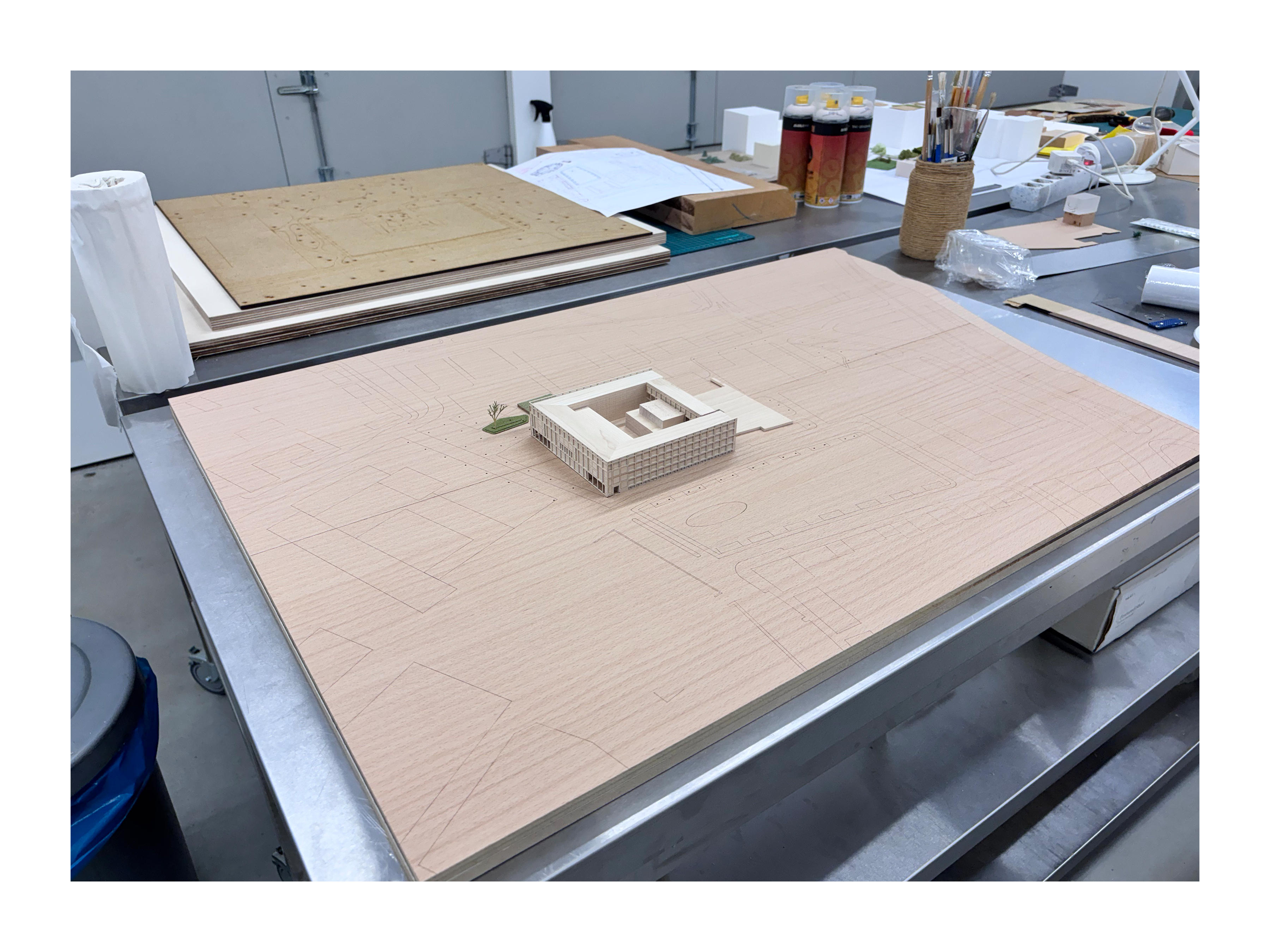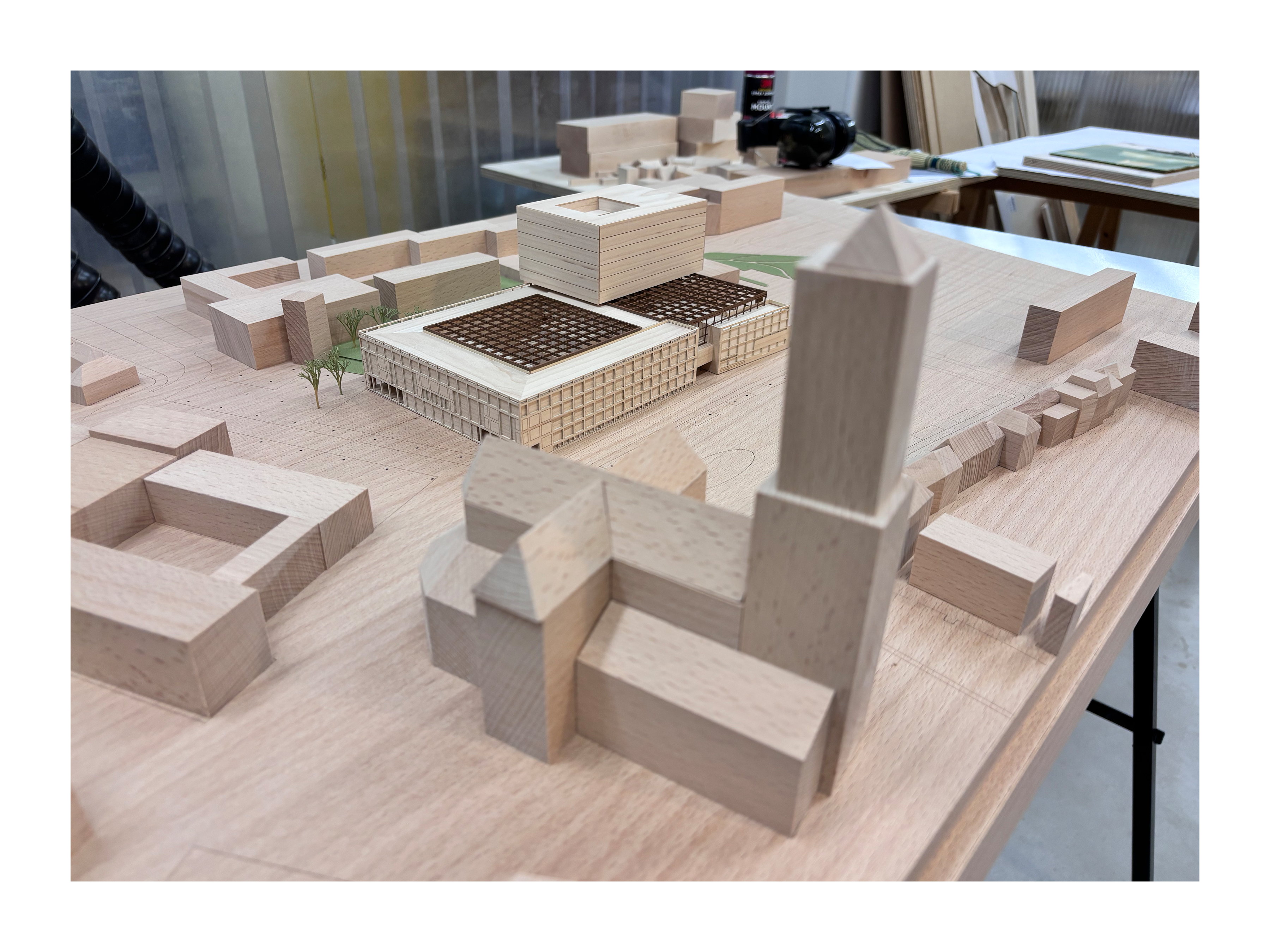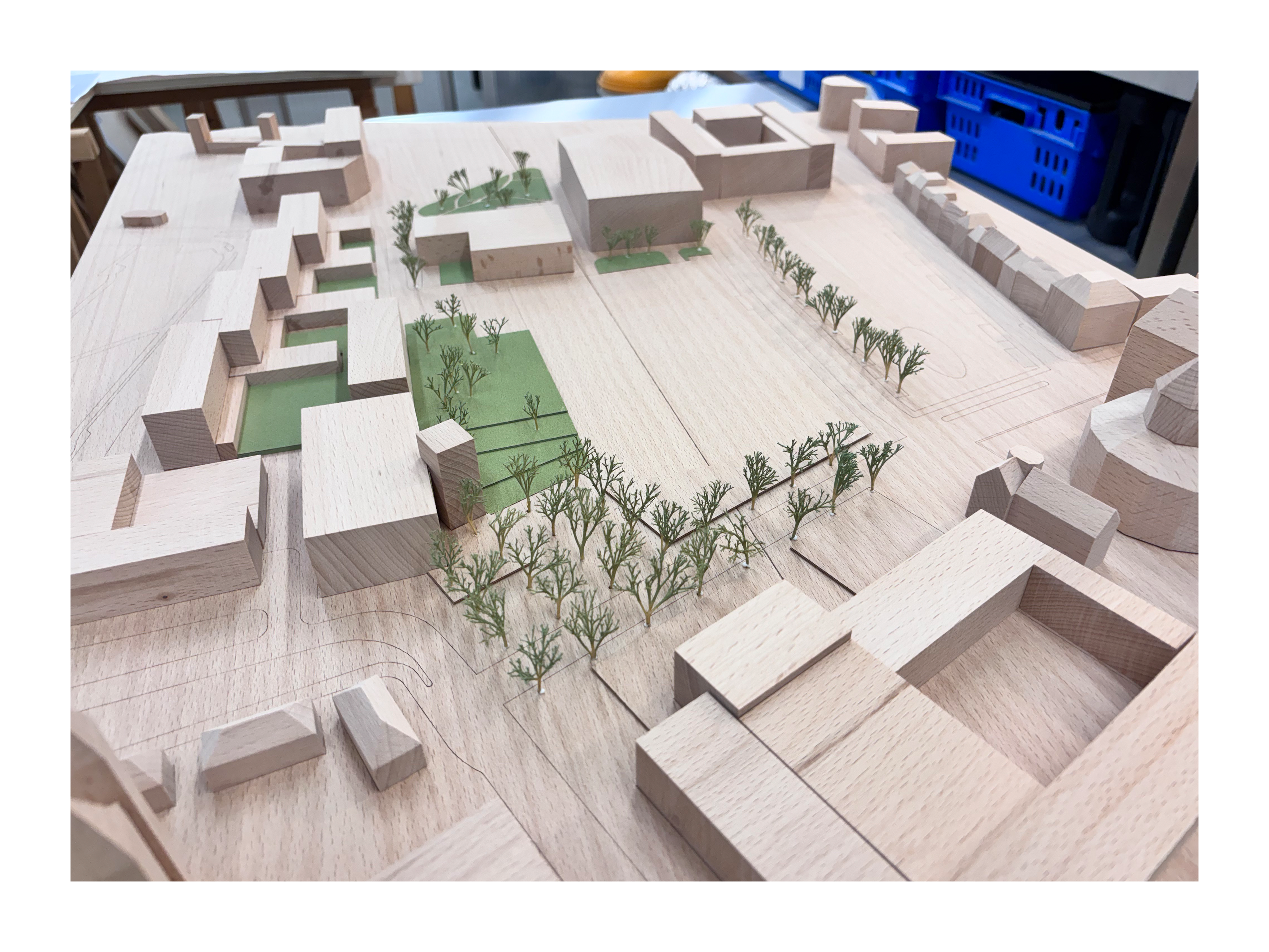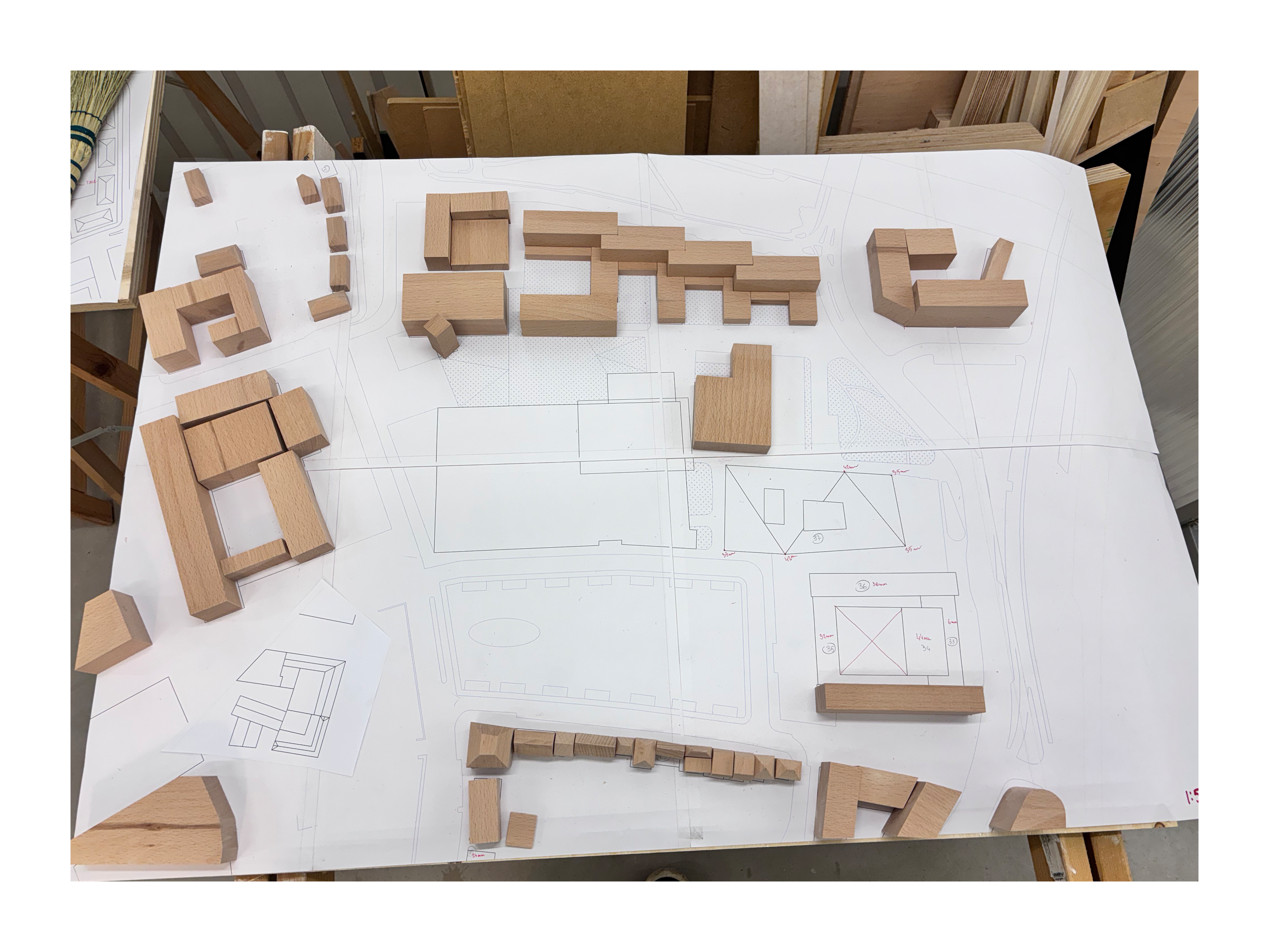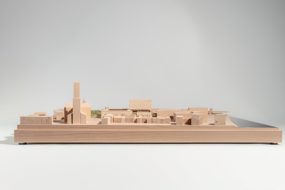 presentation / scale. 1:500 / materials. Maple, Beech, Maple/Beech/Mahogany veneer, MDF, Aluminium, mixed media / 95 x 65 x 18cm