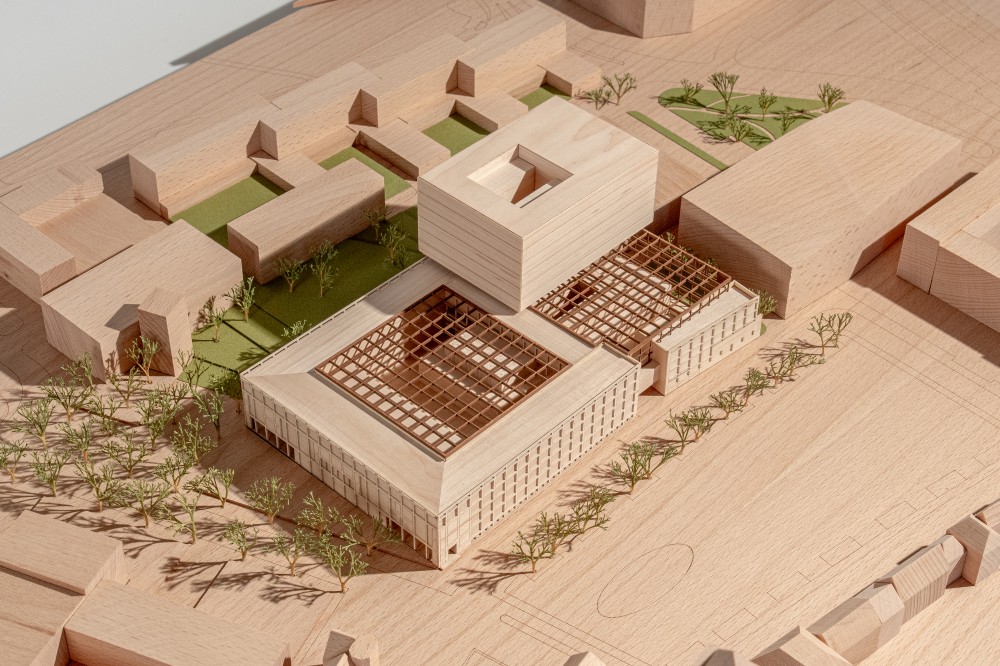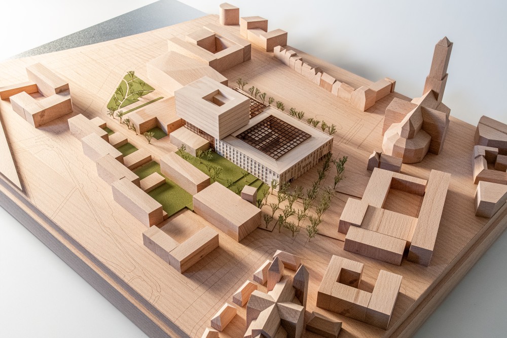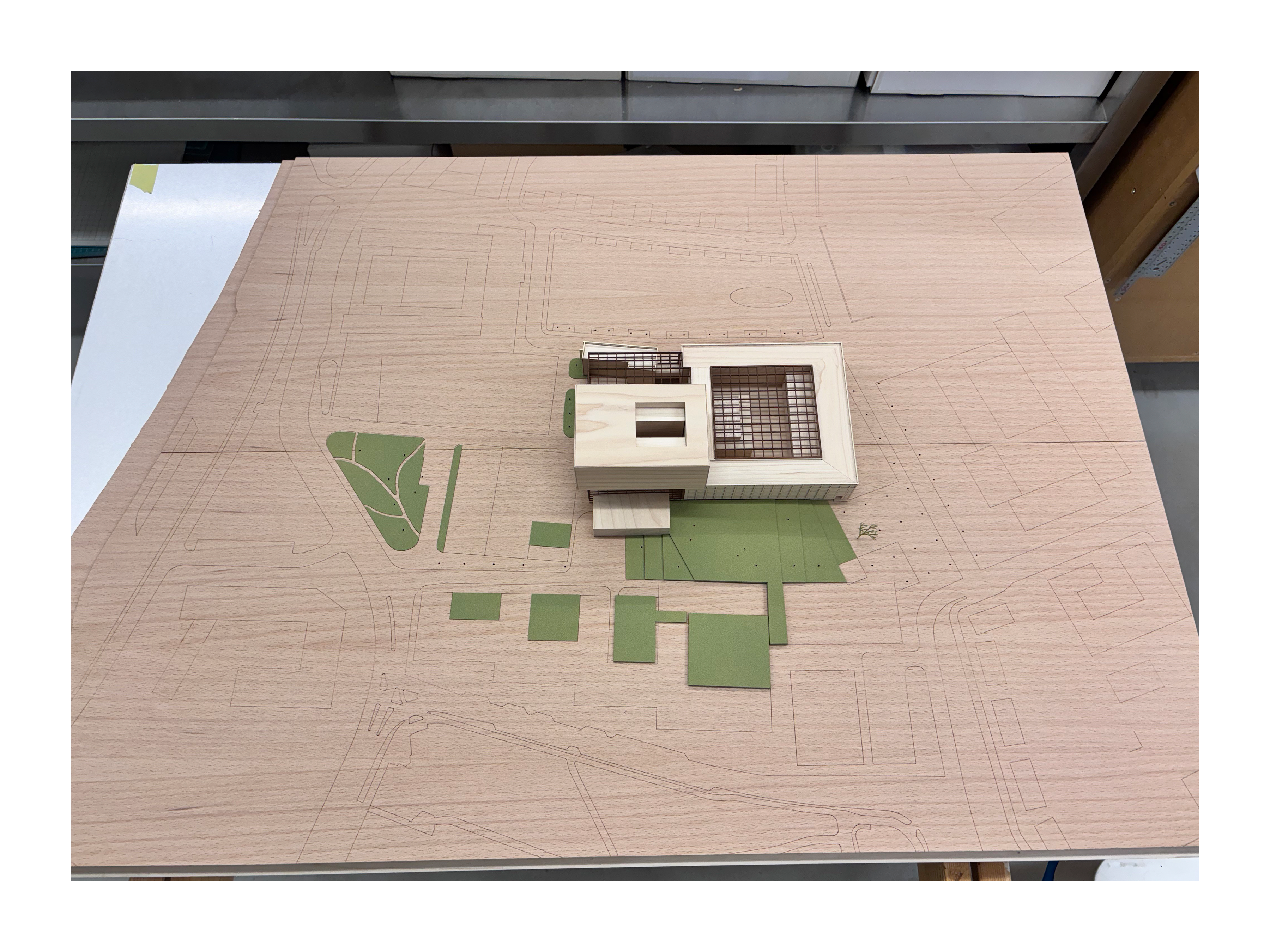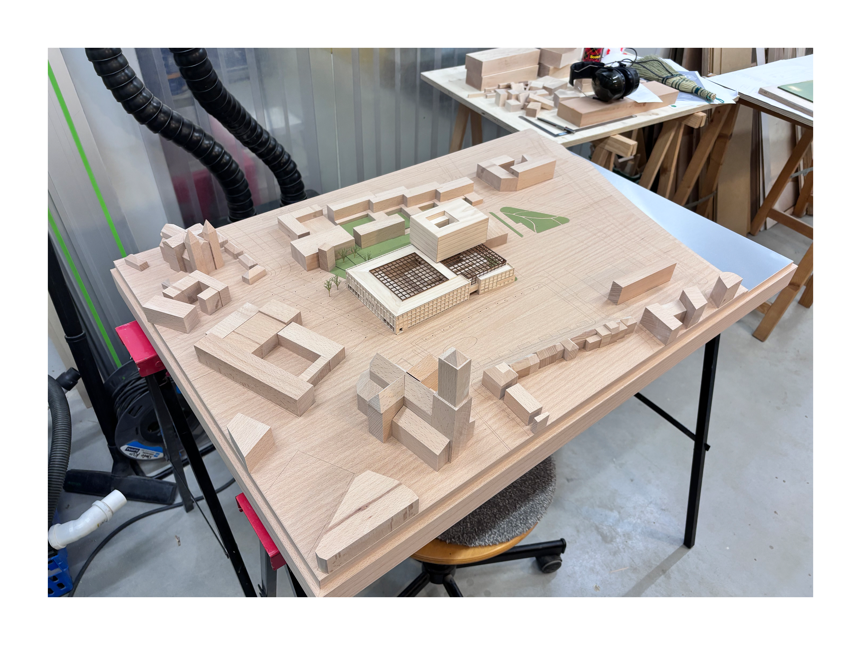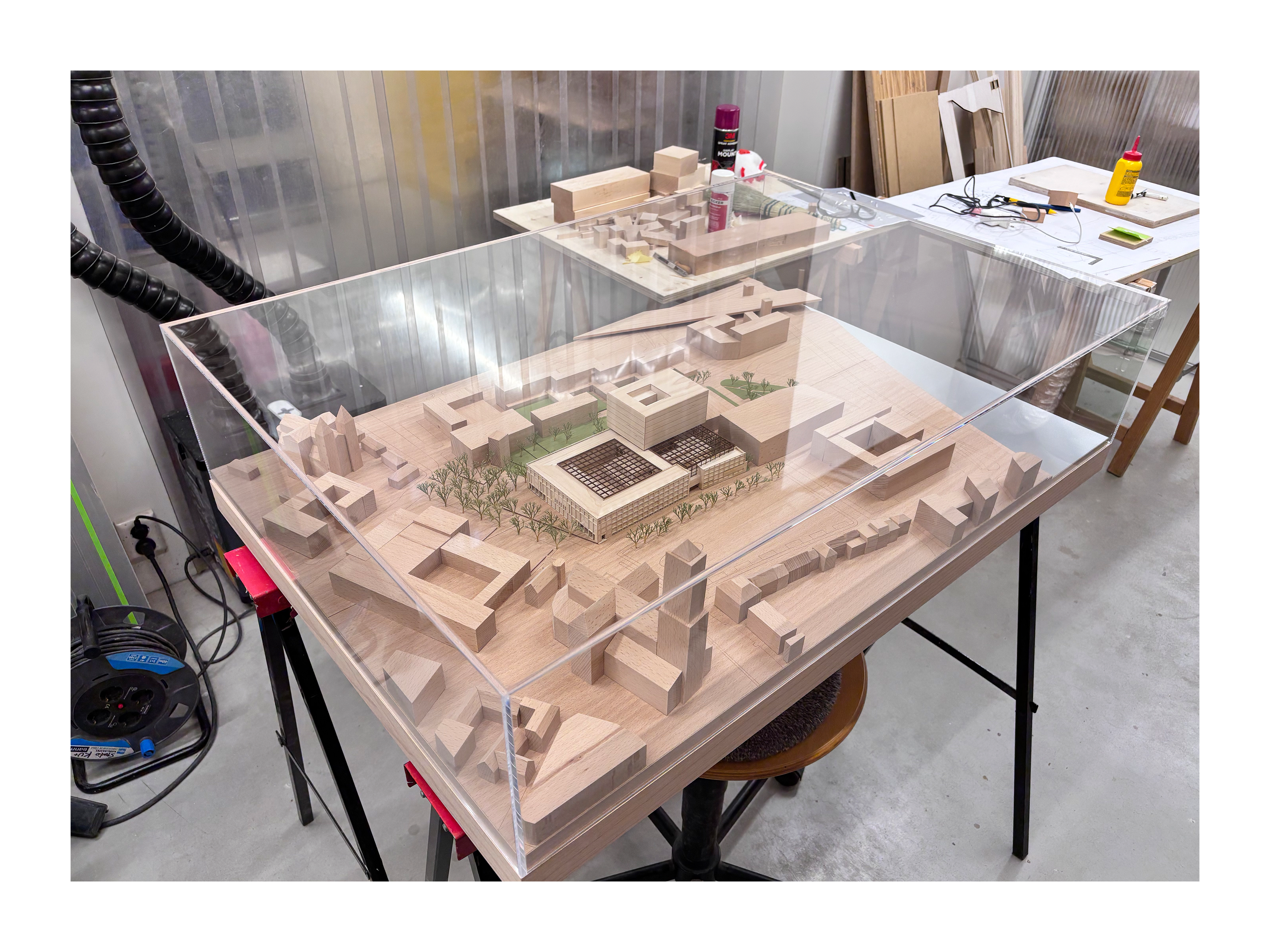 presentation / scale. 1:500 / materials. Maple, Beech, Maple/Beech/Mahogany veneer, MDF, Aluminium, mixed media / 95 x 65 x 18cm