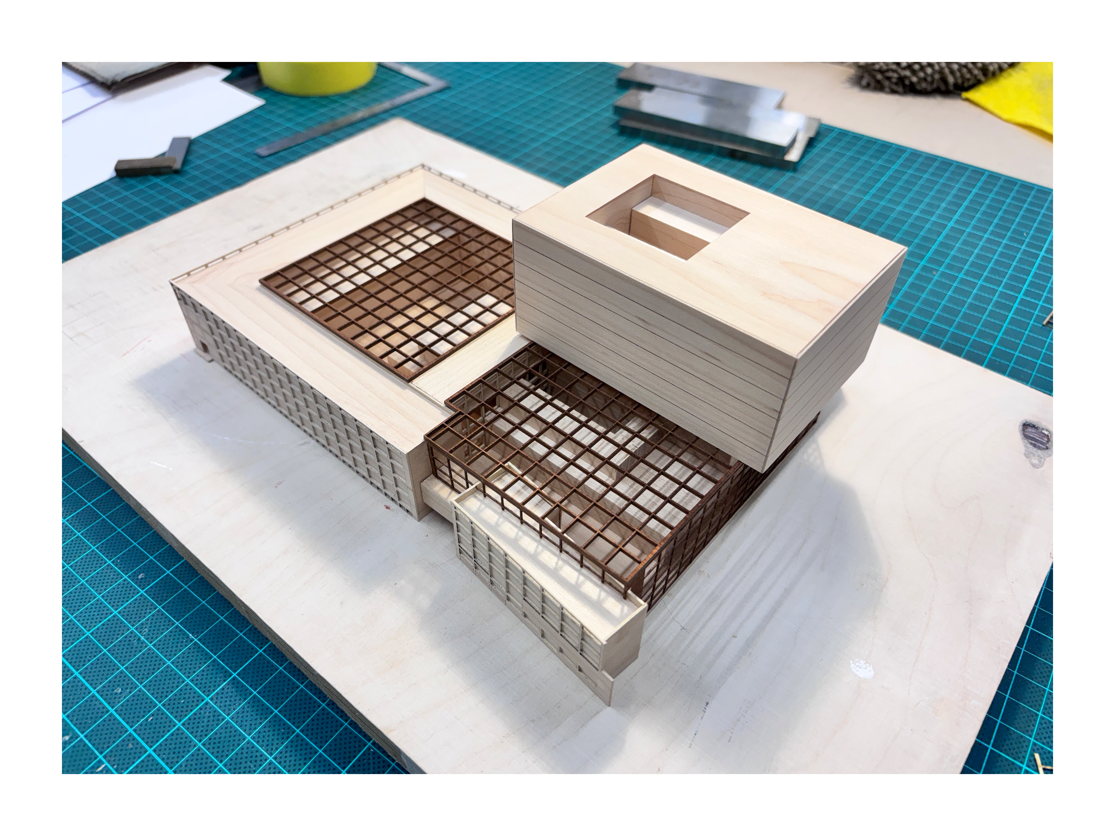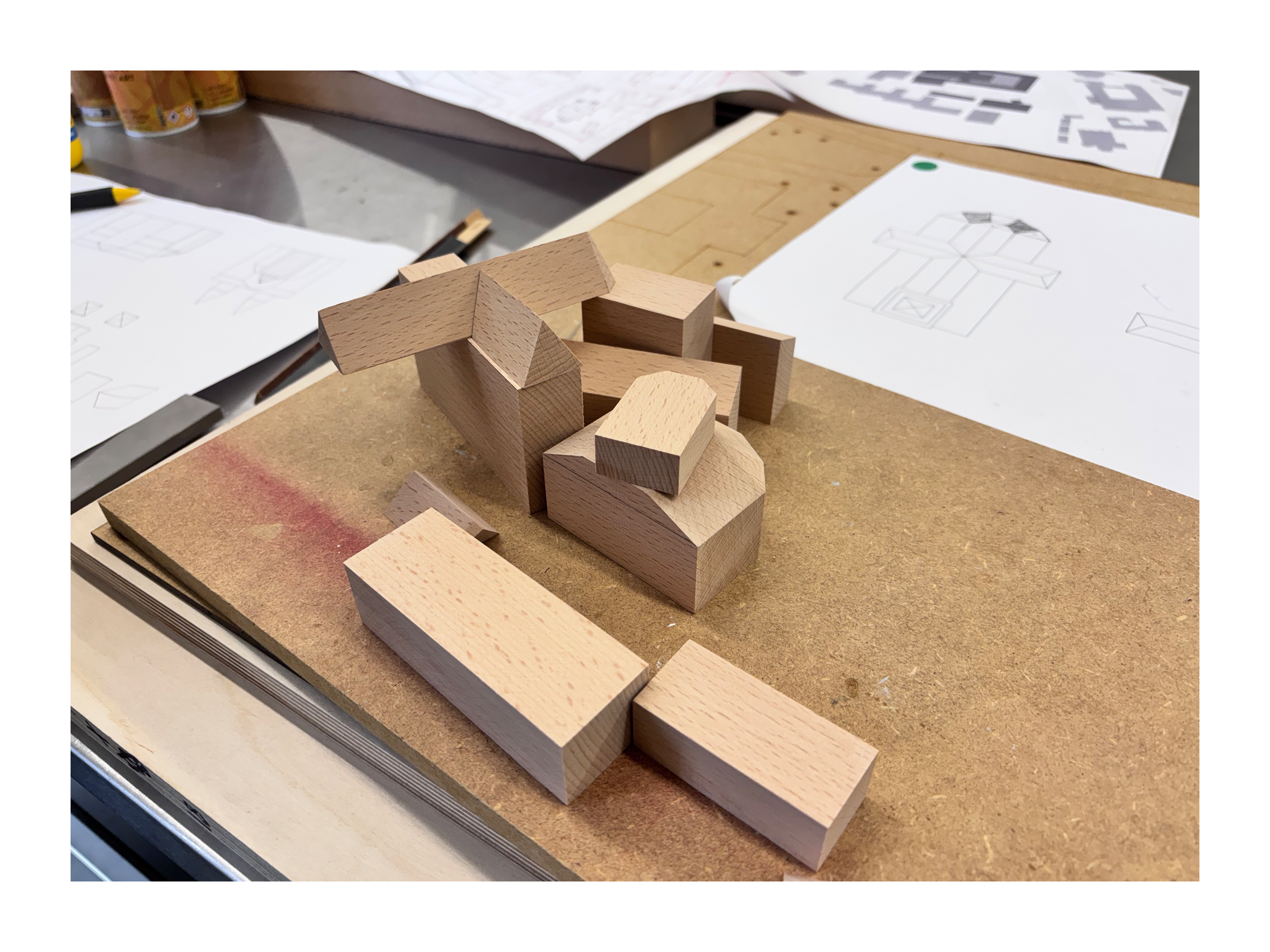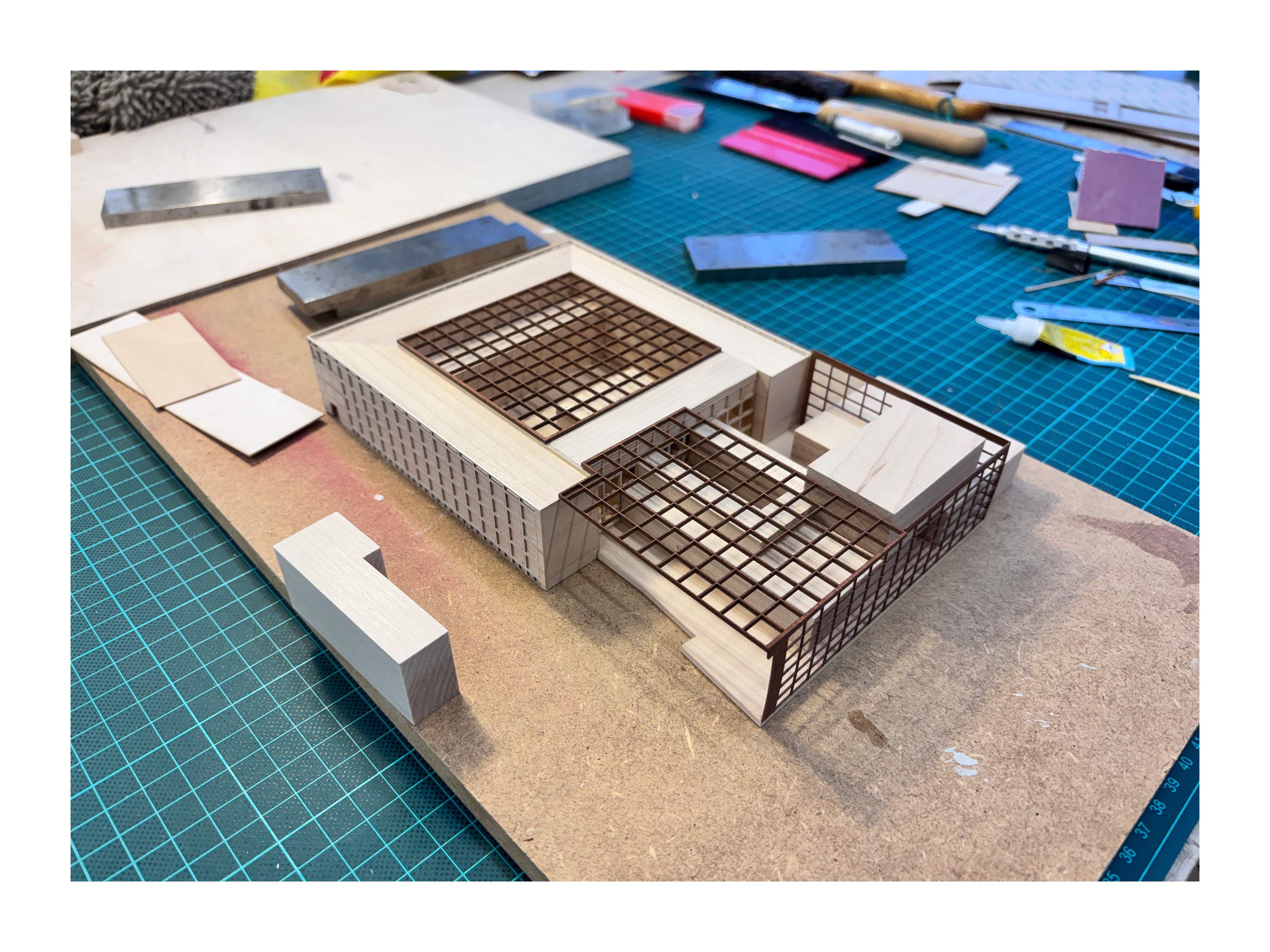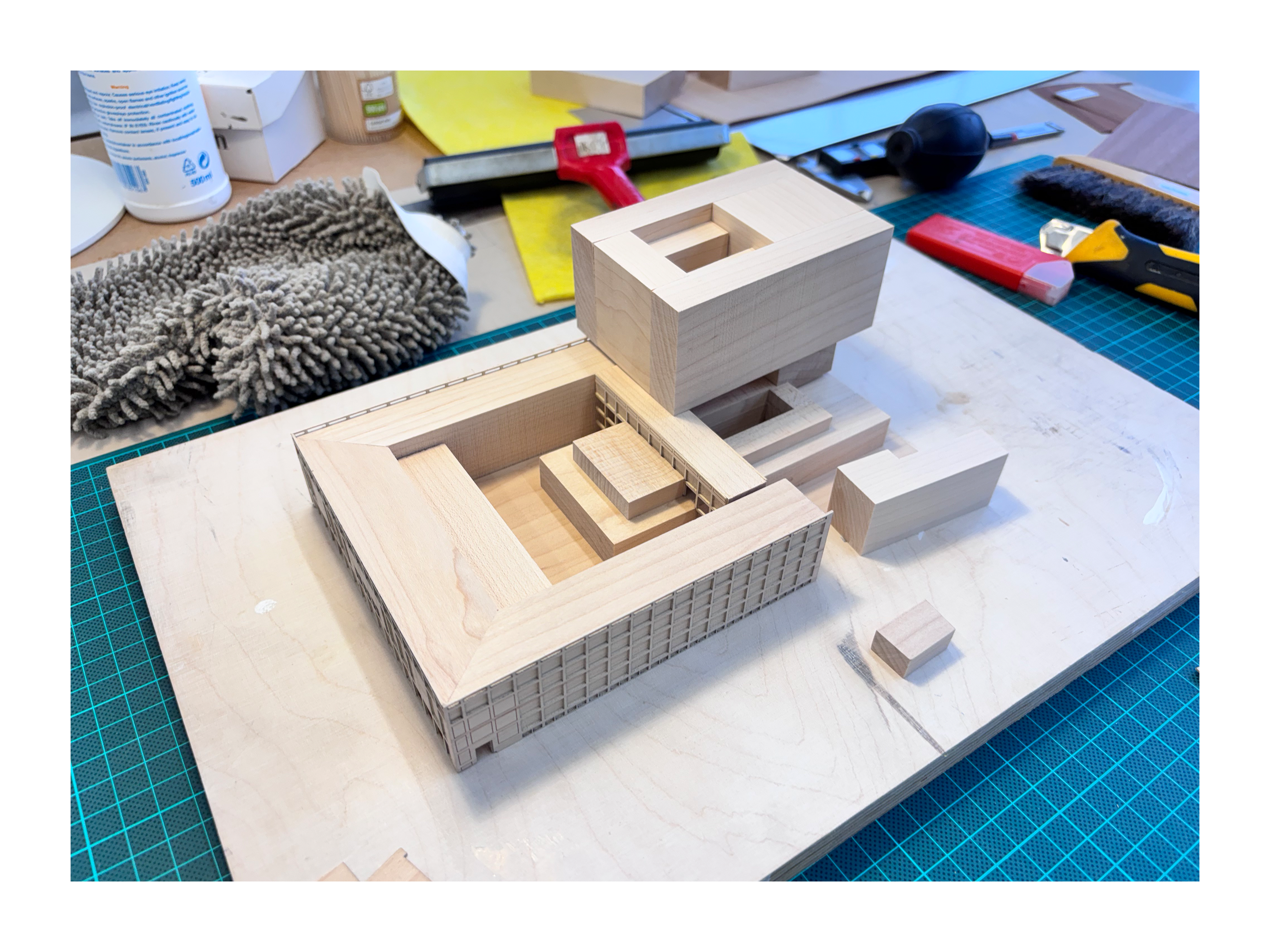 presentation / scale. 1:500 / materials. Maple, Beech, Maple/Beech/Mahogany veneer, MDF, Aluminium, mixed media / 95 x 65 x 18cm