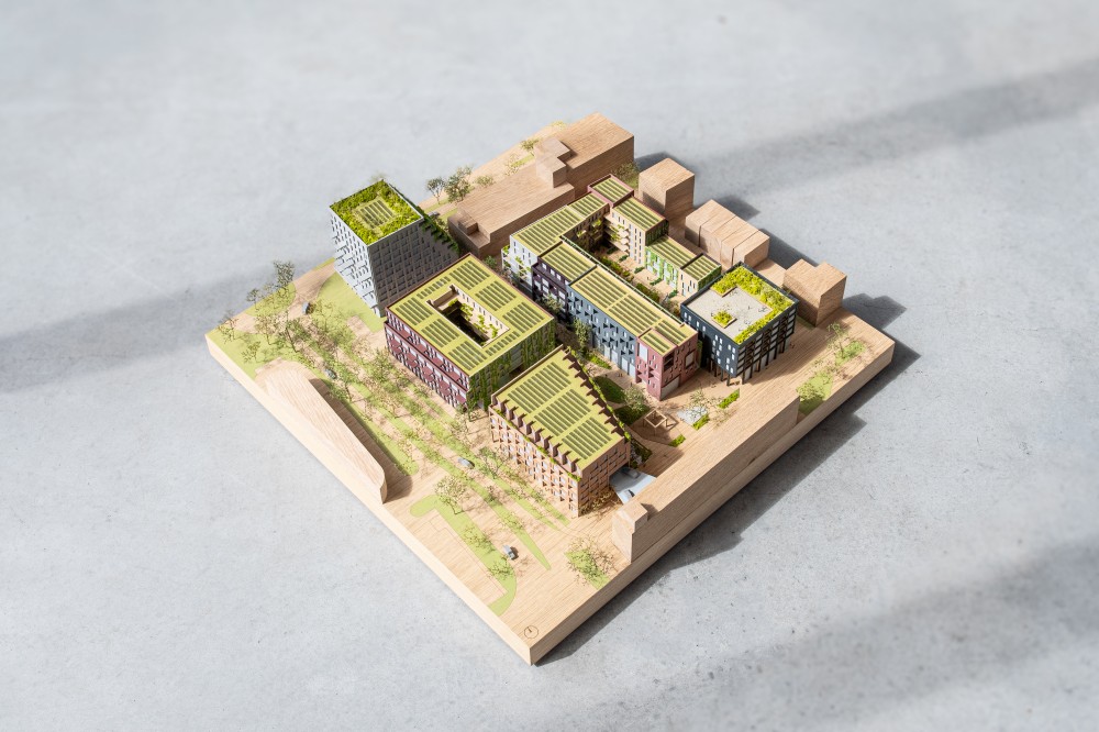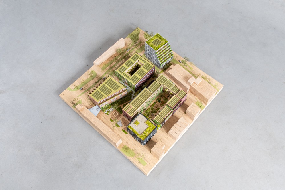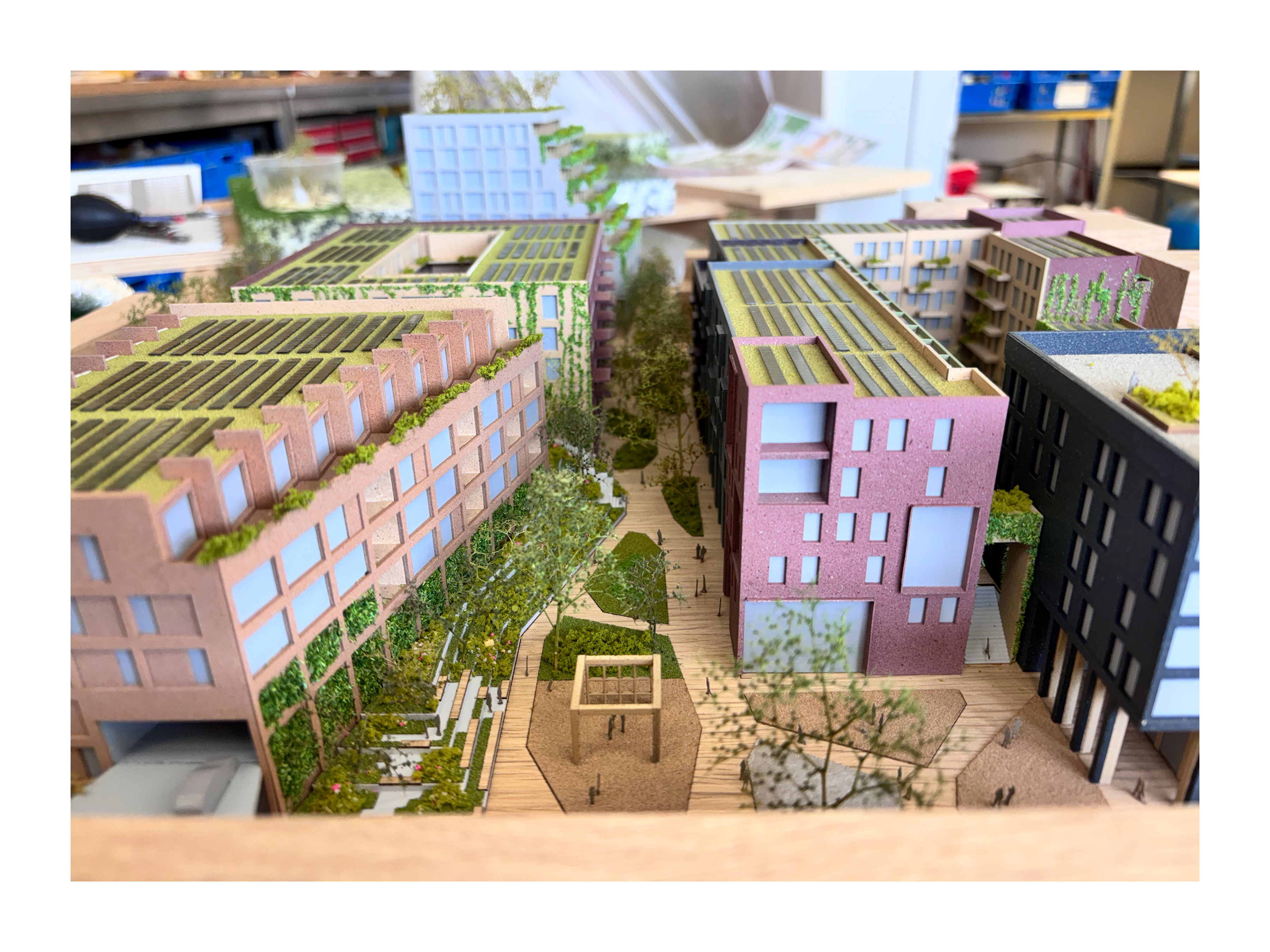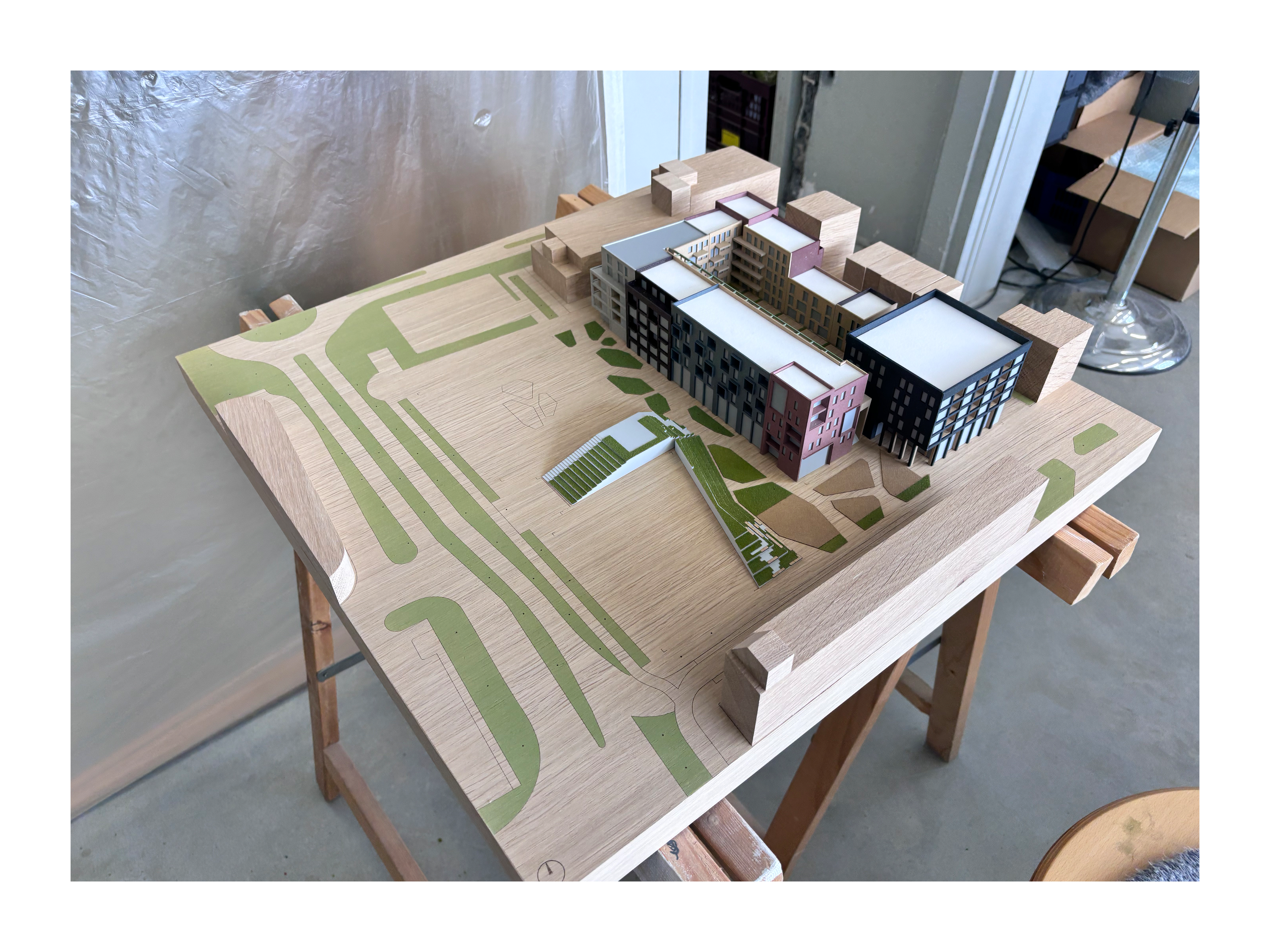 competition / scale. 1:250 / materials. Cardboard, MDF, 3D print (FFF), Oak wood, Veneer, mixed media / 60 x 60 x 18cm